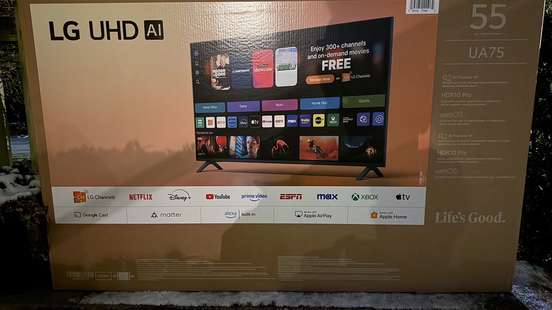 Still in the box. The LG 55UA75002UA (part of the 2025 UA75 series), 4K UHD Smart TV known for its vibrant colors, sharp picture, user-friendly webOS, offering features like HDR10 Pro, built-in voice assistants (ThinQ, Alexa, Google), AirPlay 2, Chromecast, and gaming tools. * Picture Quality: Delivers vibrant, well-saturated colors, sharp 4K detail, good contrast, and benefits from HDR10 Pro and 4K upscaling for a "wow" effect. * Smart Features: Runs LG's webOS, offering easy navigation, access to all major apps (Netflix, YouTube, etc.), and free LG Channels. * Gaming: Supports essential features like VRR, Game Optimizer, and cloud gaming (Xbox Cloud Gaming, GeForce NOW) for smooth gameplay. * Connectivity: Includes built-in Google Assistant, Alexa, Apple AirPlay 2, Chromecast, and Matter support for smart home integration.