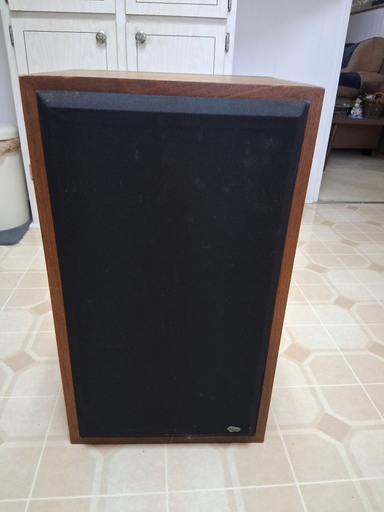 2 speakers for $30. Solid wood cabinets, 35 pounds each. 14 1/2" wide, 11 1/2" deep, 25" high. 12 inch woofer and a tweeter in front. A tweeter in back. They work good but the woofer needs new lining. 8200 US1 between prima vista and crosstown location.