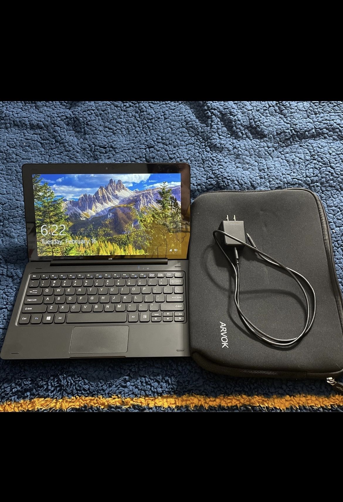 This is a 2 in 1 laptop/ tablet you can use with or without the keyboard. Comes with carrying case and charger