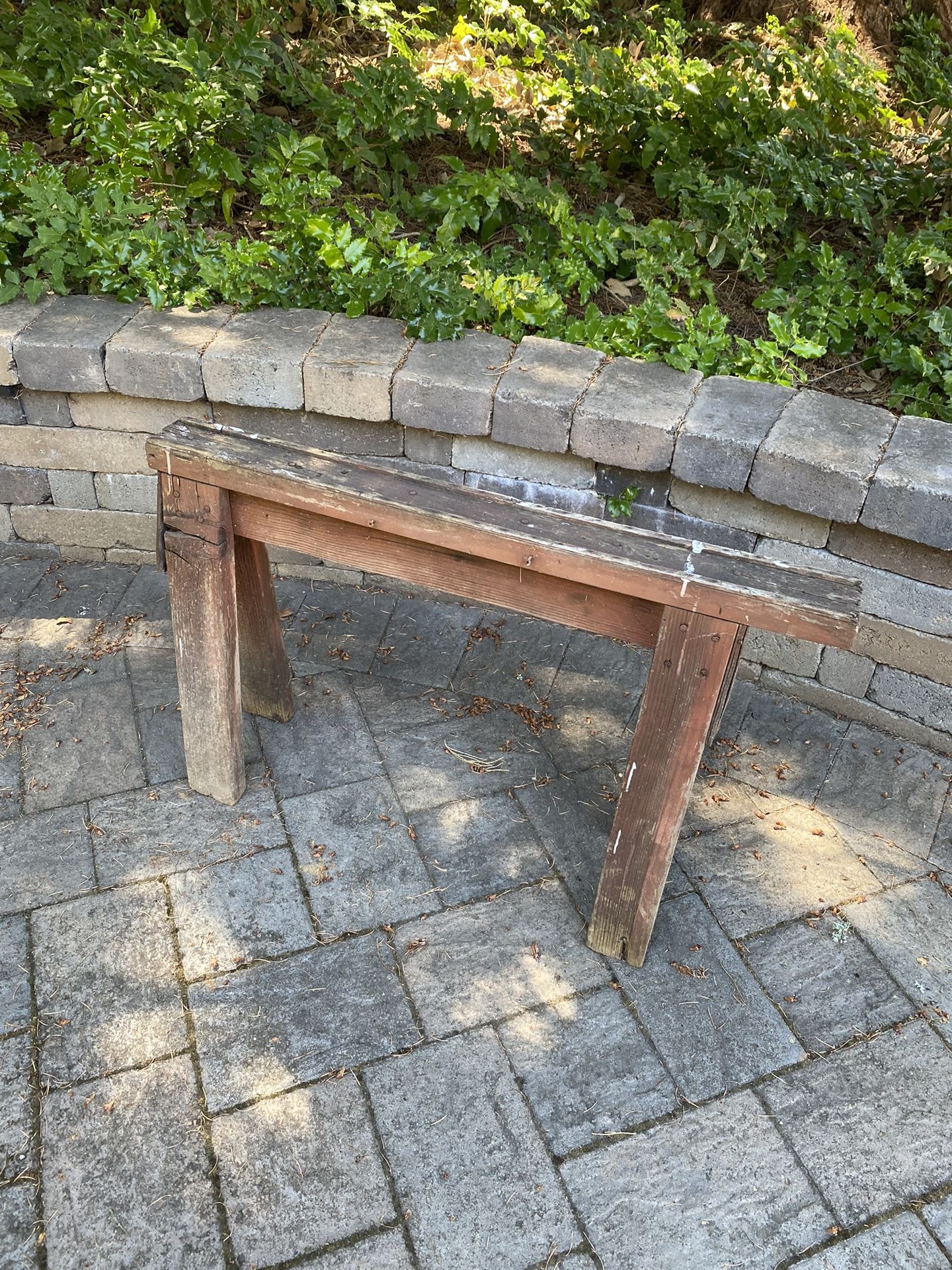 Wooden saw horse in decent working order but does have a crack in one piece of wood, as seen in the last picture. Thanks for your interest!