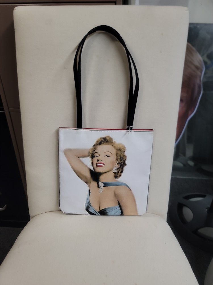 9 1/2" height x 9 1/2" width flat handle drop down 9" Red interior, inside zipper pocket. Made In USA.