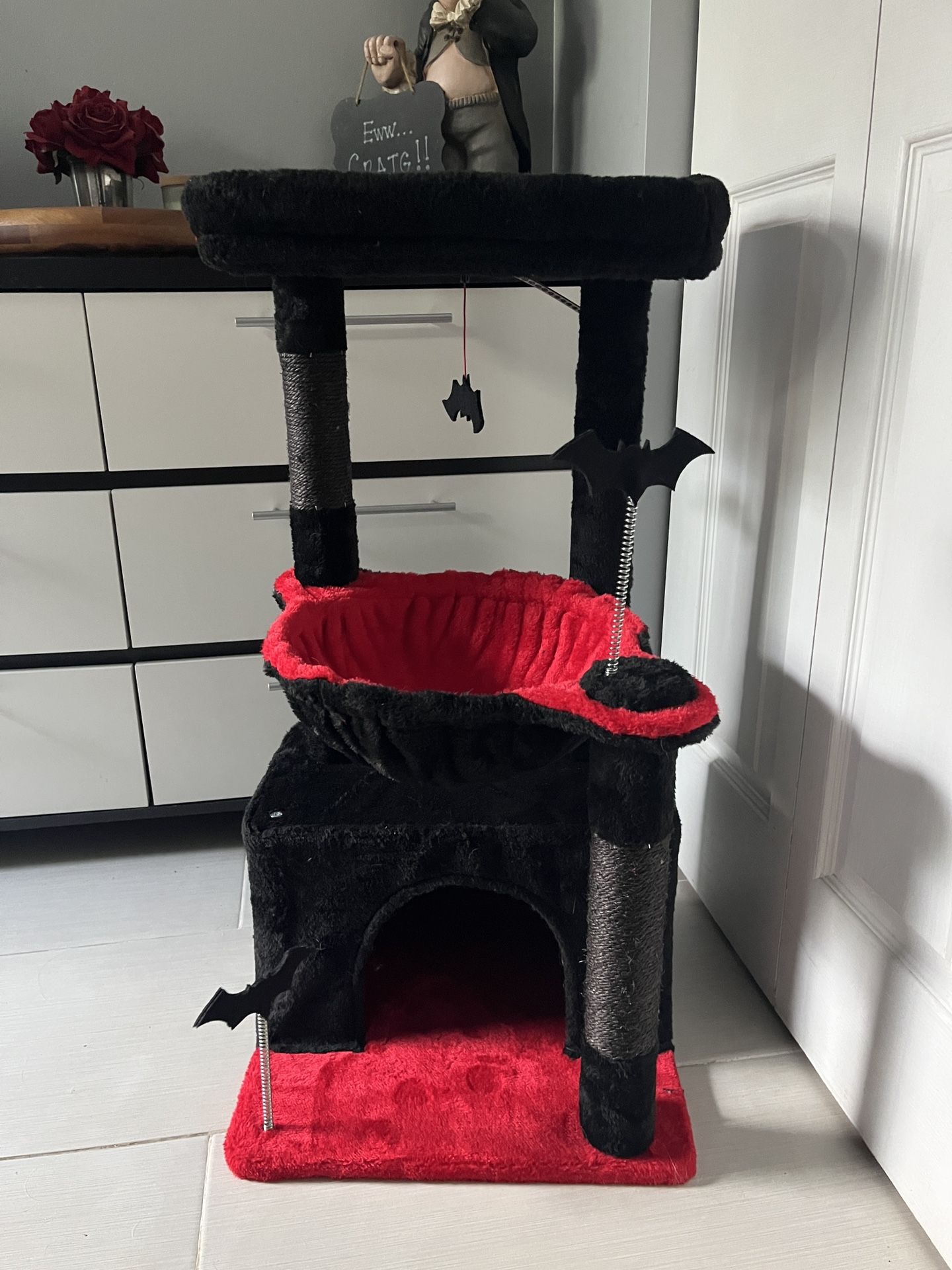 Multilevel Goth Black Bat Cat Kitten Loft Bed Scratching Post Tower Tree