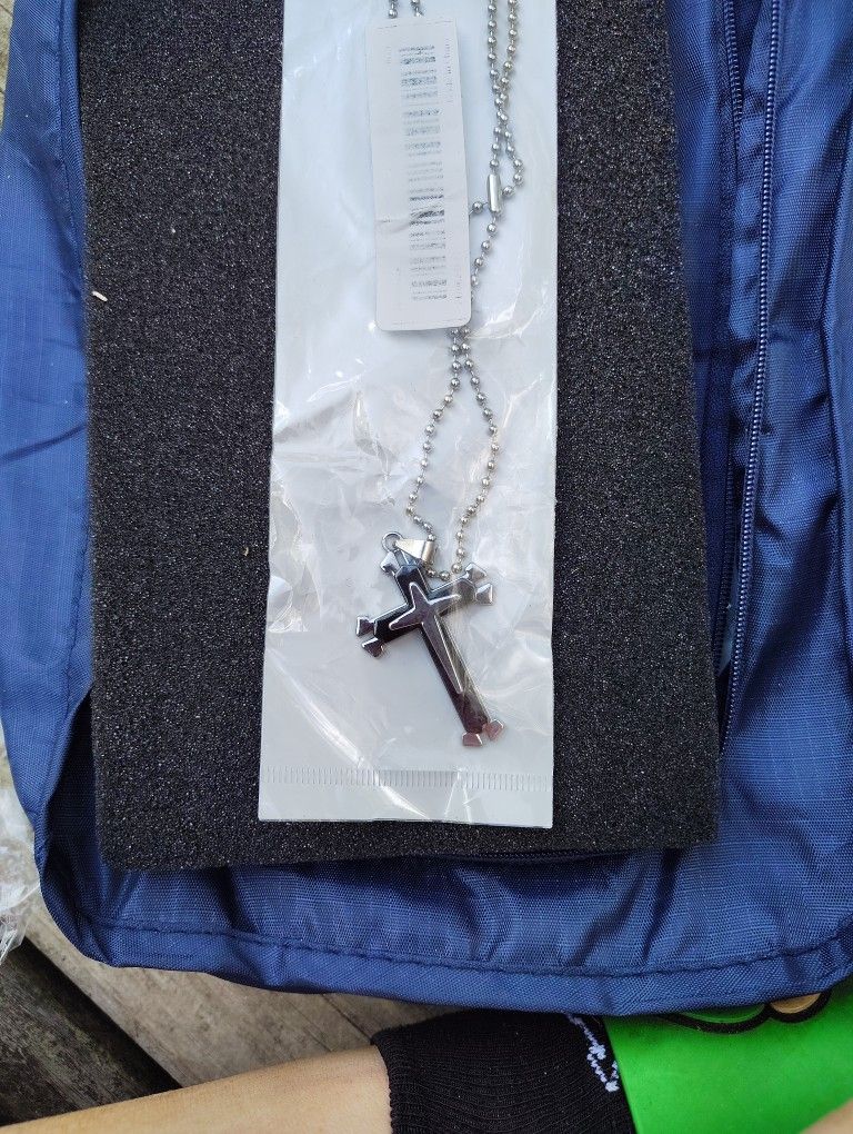 Stainless Steel Black Cross Necklace. Crafted with precision and simplicity, this necklace features a striking blue cross pendant suspended from a stainless steel chain. I have 60 in total. Will sell individually for $3 or 10 for $25