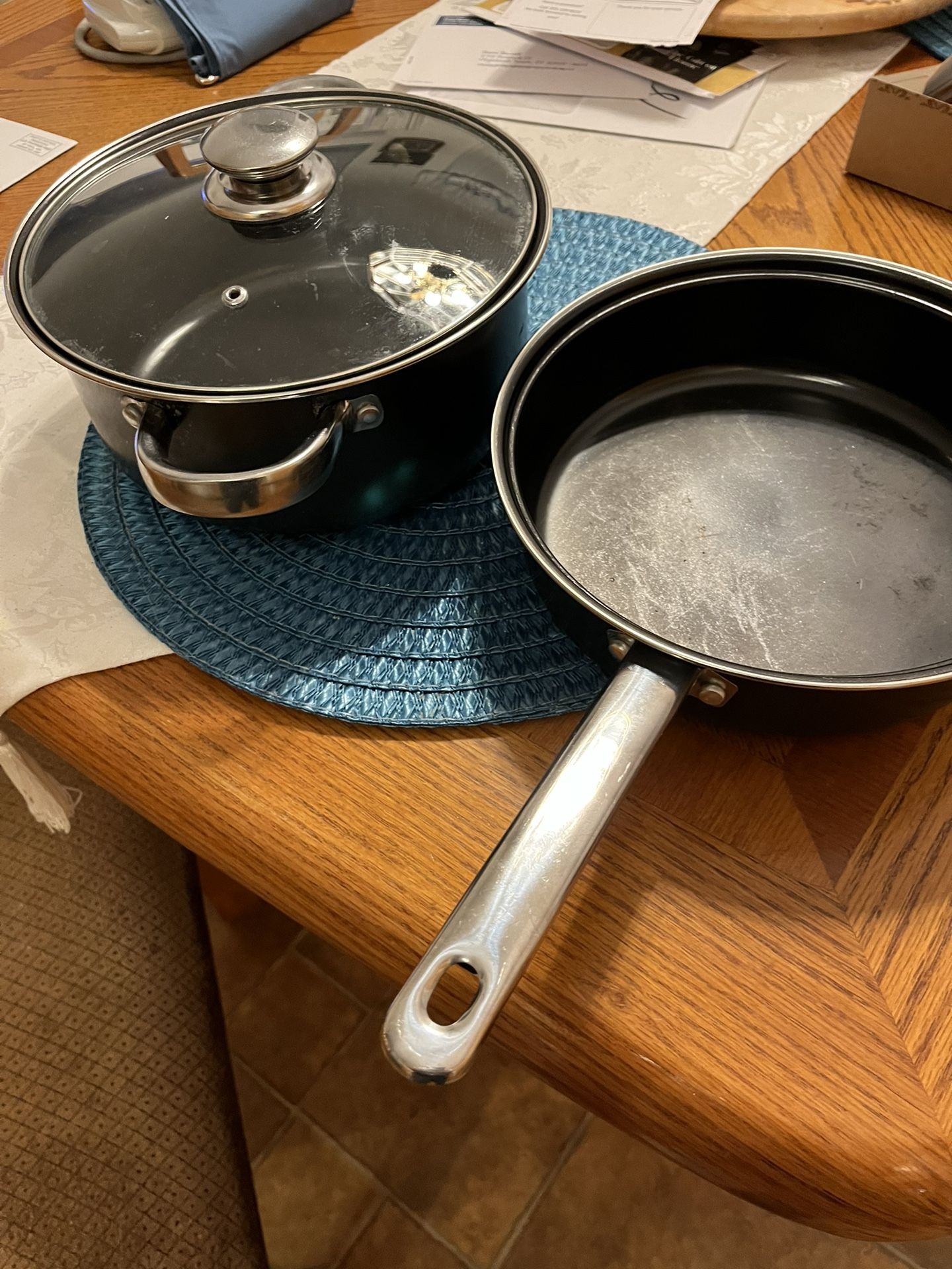 Nonstick cookware Chef’s classic Cool. Grip handle Color. Black Great Sale. $15. For both !