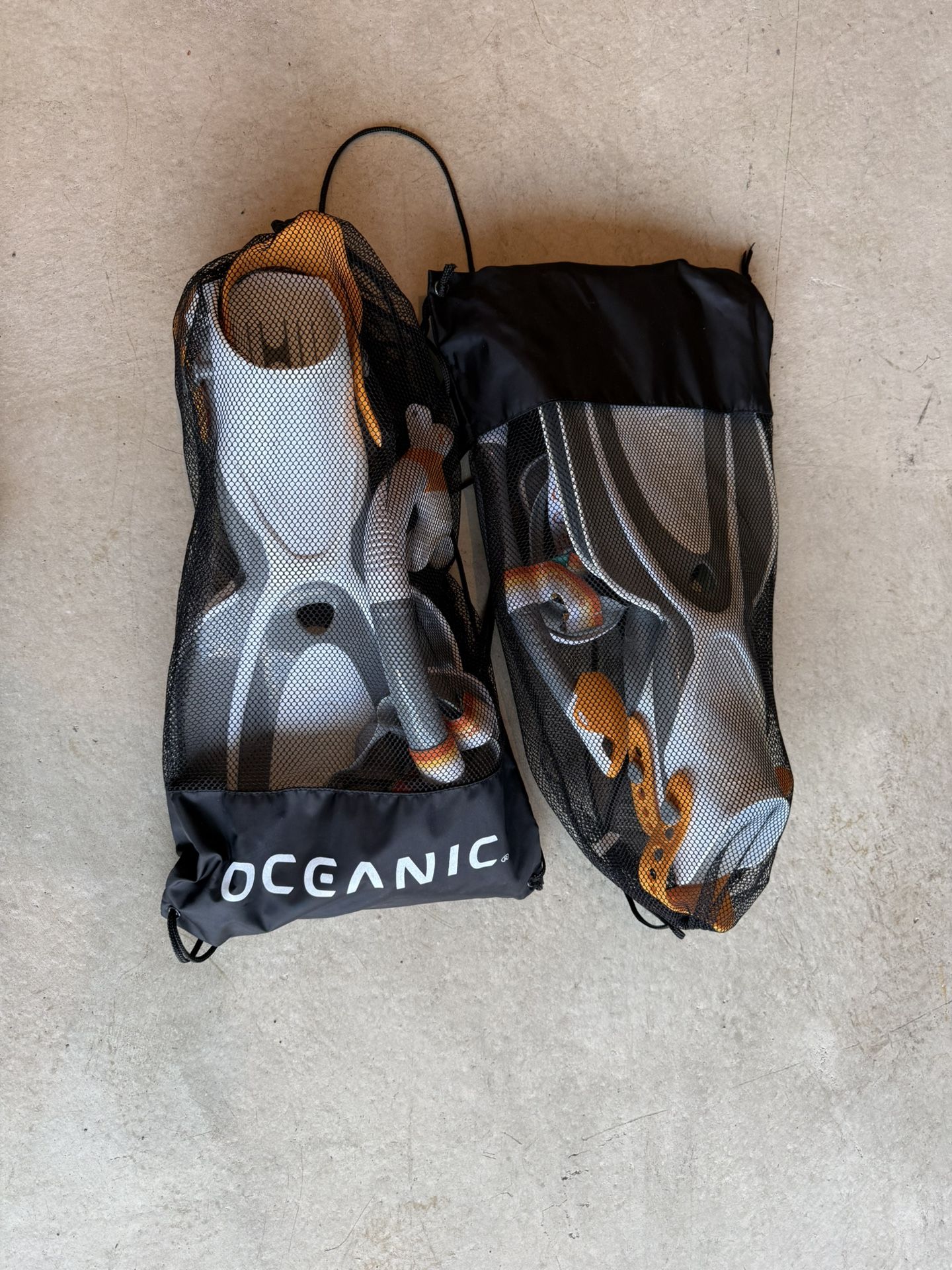 Used once, bought at Costco. Includes snorkel, flippers and bag. One size. $25/each or $40 for both sets.