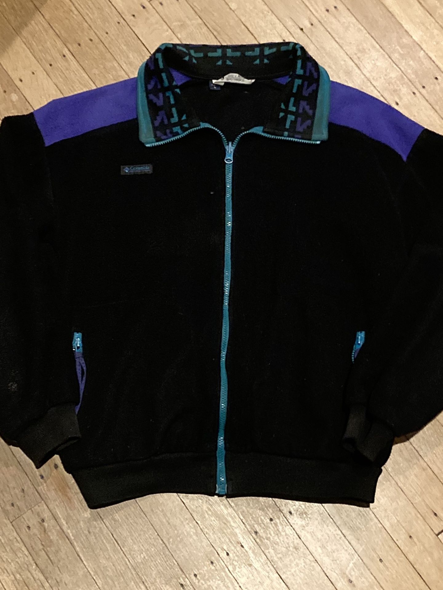 Vintage Columbia Aztec Pattern Purple And Black Fleece Jacket Zip Up Size Large