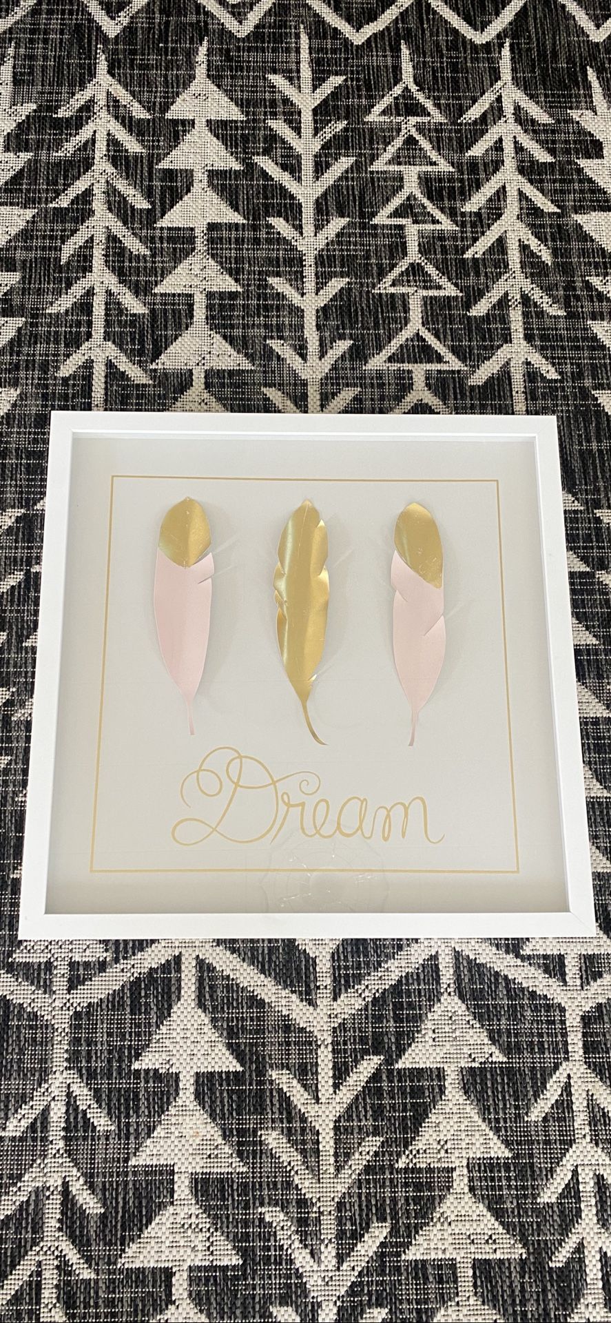 Glass Framed Pink+Gold Dream Feathers 20x20 inched ~ Colleen Kari’s designs~