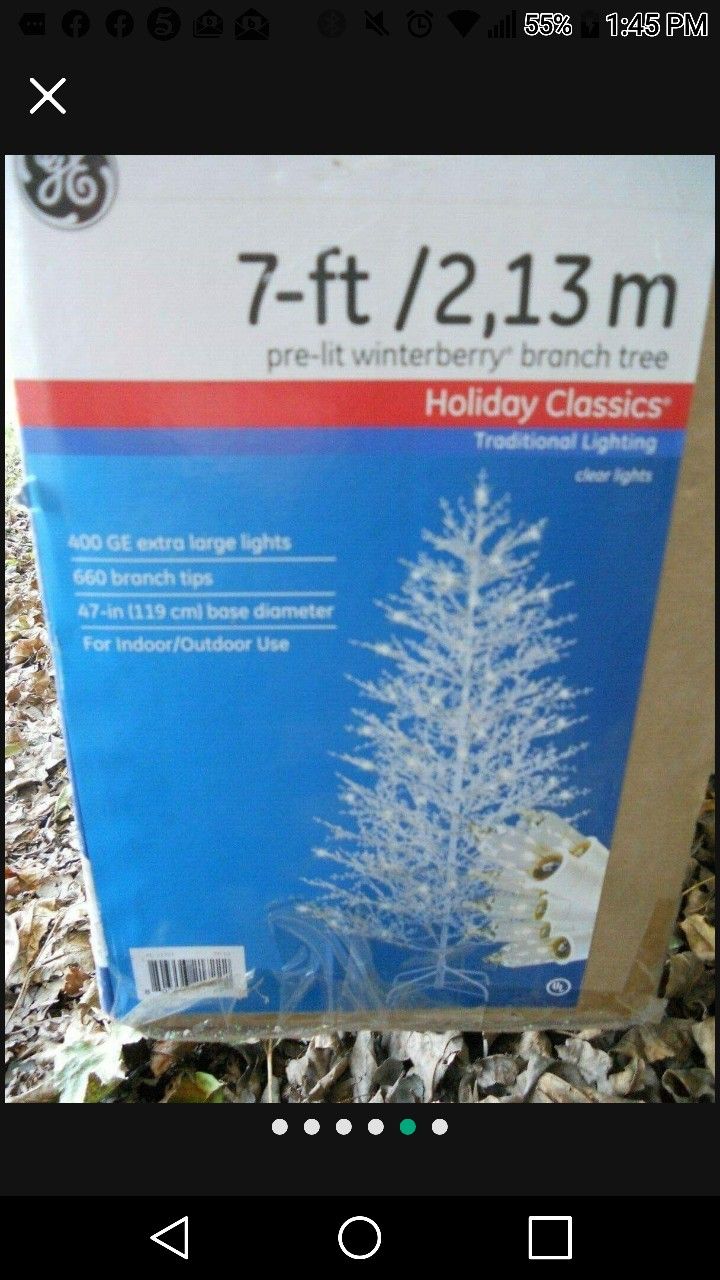 GE 7-foot white winter berry branch pre-lit tree 400 Cool white LED lights 46 Molded realistic looking white berry branches Tree Type Winterberry® Branch Tree Tree Height 7 ft Tree Diameter 47 in Tree Tip Count 660 Easy Light Technology® No Easy Shape Technology® No Light Count 500 Light Type LED Light Color Warm White Bulb Rating 3.3 V, 0.066 W, 0.02 A Bulb Size and Type 5.5mm StayBright® Tree Wattage 20.4 W Use Indoor/Outdoor