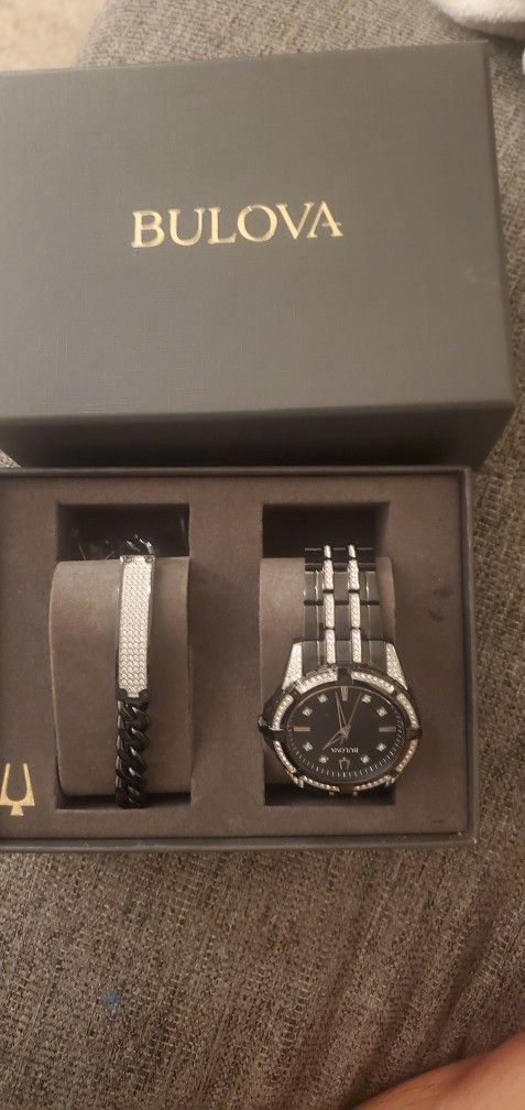 Bulova Men's Black Stainless Crystal Watch an dBracelet Set