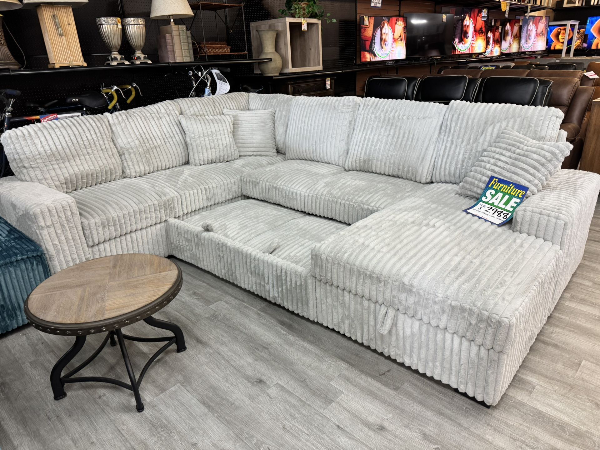Light Grey Corduroy Sleeper Sectional