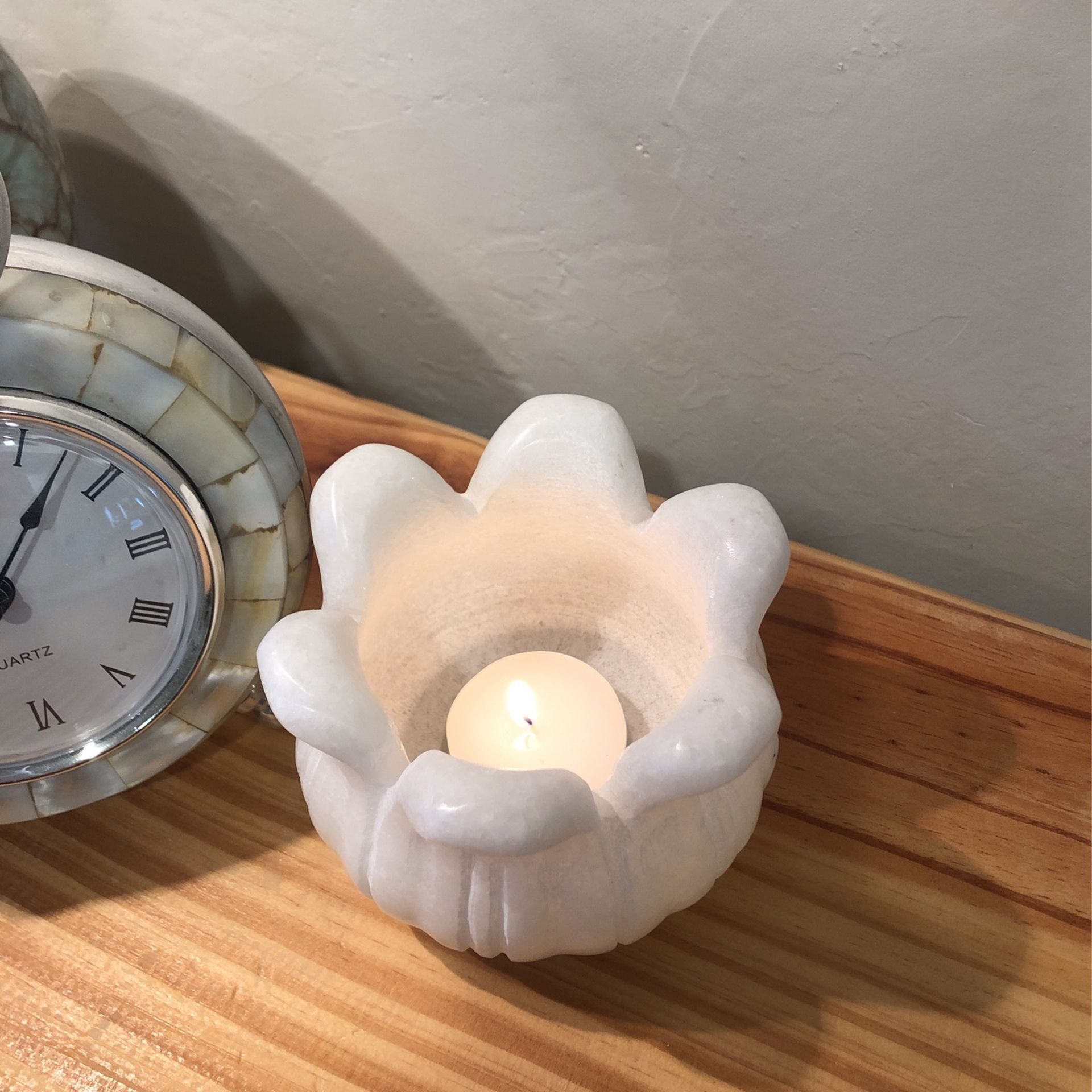 Beautiful, heavy, white, tulip shaped marble votive / candle holder, measures 3 inches high by almost 4 inches in diameter. Like new and extremely well-made! Also, be sure to check my other listings. ***See more at our booth in Seahive La Jolla as well!