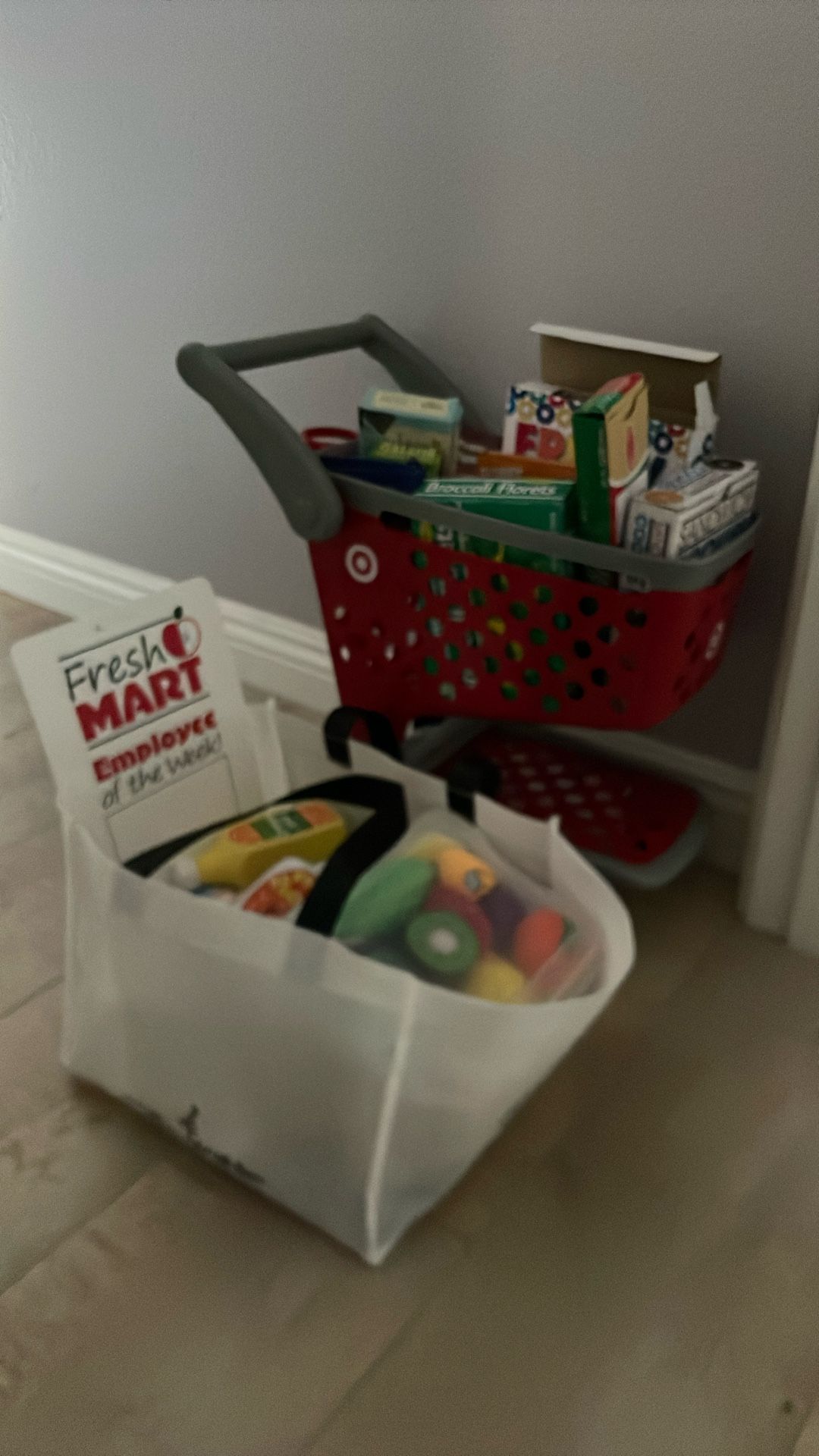 4 toy sets mixed. Everything about grocery shopping and vegetables & fruit. Clean and excellent condition. Melissa & Doug Fresh Mart Grocery Store Play Food and Role Play Companion Set, Kids Grocery Store Pretend Pretend Food ($23.99 @amazon) Melissa & Doug Wooden Cutting Fruit Toy Food Set & Pretend Play Kitchen Accessories ($12.89 @amazon) Melissa & Doug Felt Food Sandwich Play Food Set (33 pcs) ($21.59 @amazon) Target toy shopping cart ($19.99 @Target)