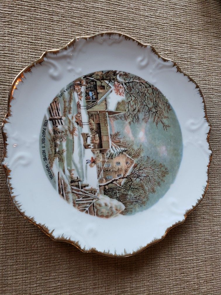Pictures are the best description CURRIER AND IVES "The Homestead in Winter" Collectible Plate Wall Hanging Holiday Snowy Farming Scene Approximately 8 inches in diameter No cracks, chips, or repairs