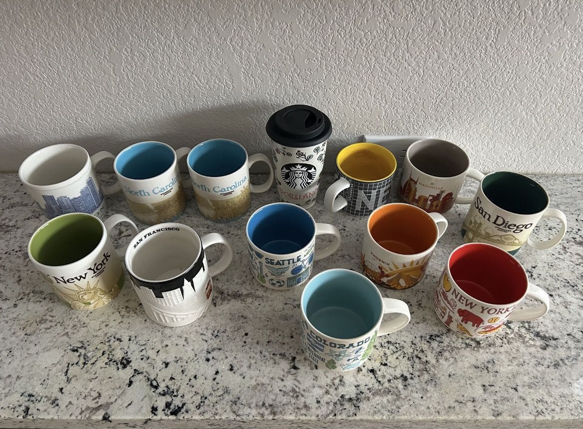 Huge Collection Lot Of STARBUCKS Coffee Mugs Cups Collectible You Are Here Been There Series $15 each Cash only North Carolina New York Phoenix Nashville Portland Boston San Francisco California Los Angeles Tennessee New Orleans Virginia Colorado Seattle San Diego Waikiki Hawaii Brisbane Australia China London And more!