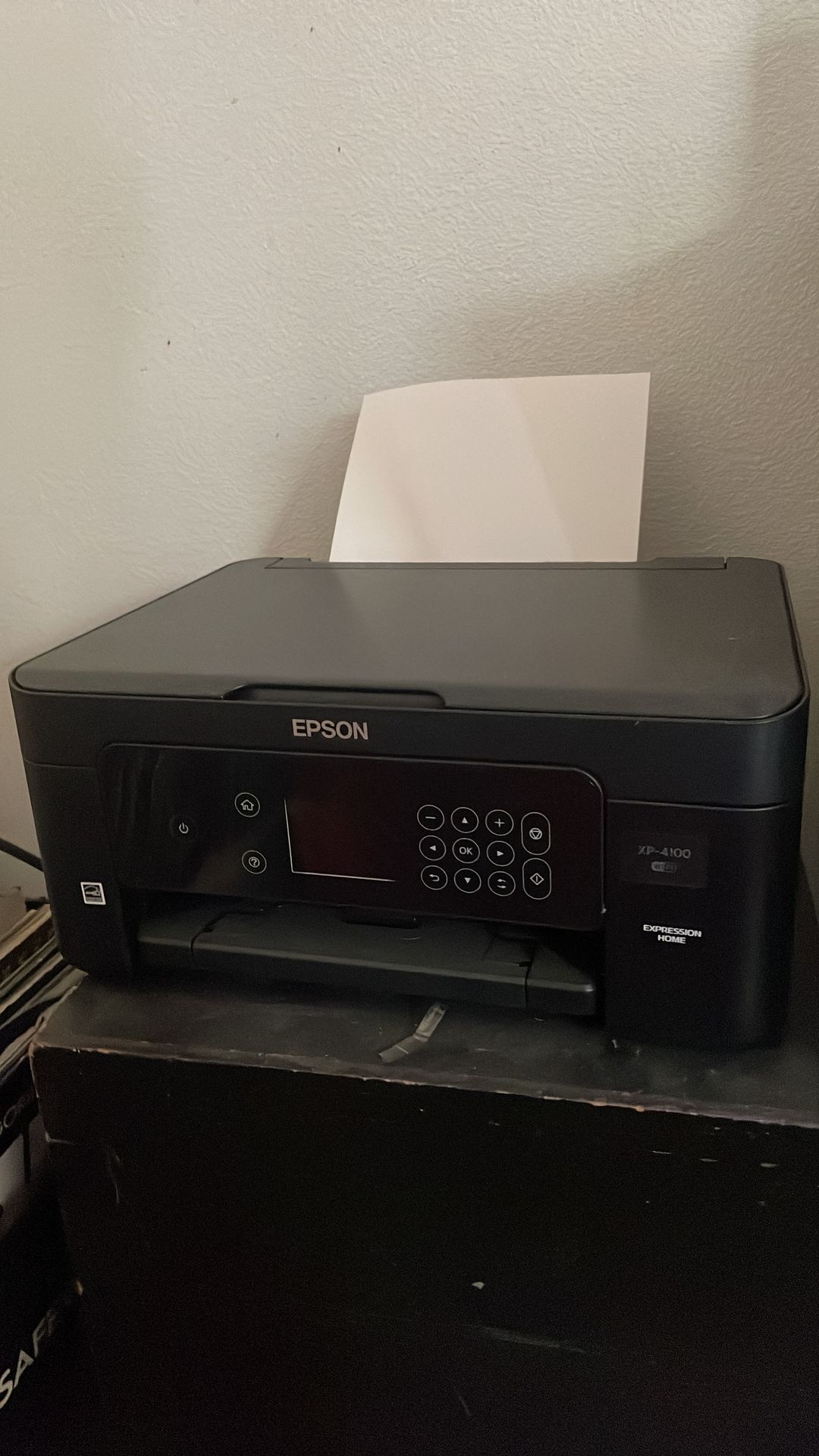 Epson printer. Barely used. I never have the need to print anything lately. Still well maintained. Wireless device printing. Color or black and white. Ink Jet printer.