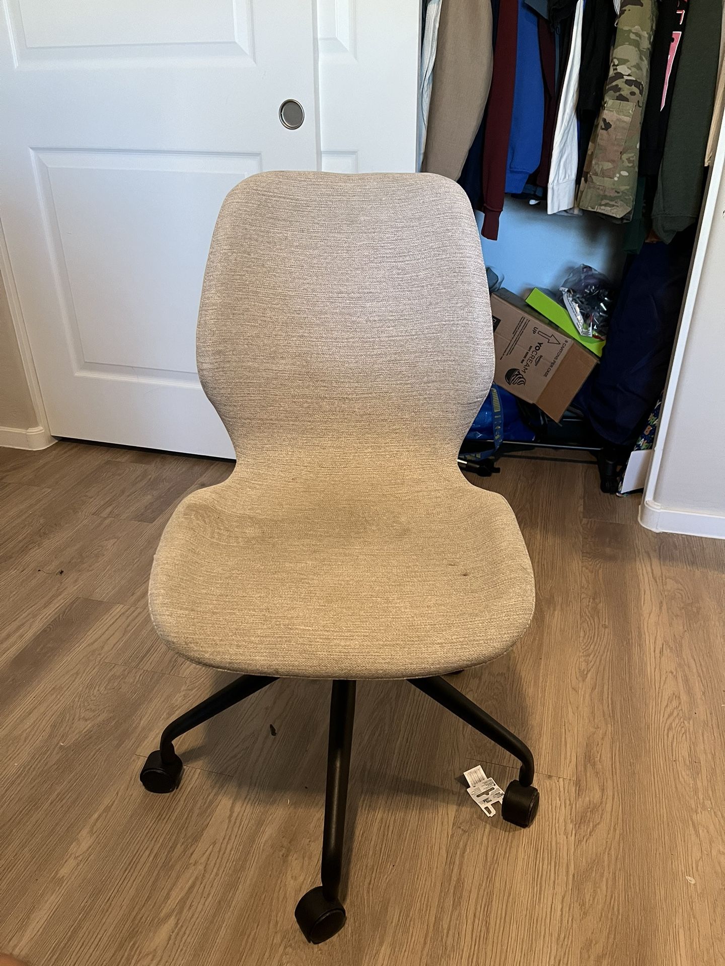 Small office chair, pretty firm, good for a children’s desk. A little dirty but clean that off and it’ll be good. $5