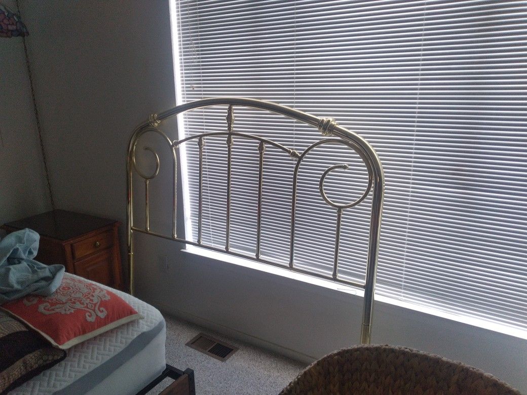 Finished metal brass headboard will fit a double or a queen. Moving must go...