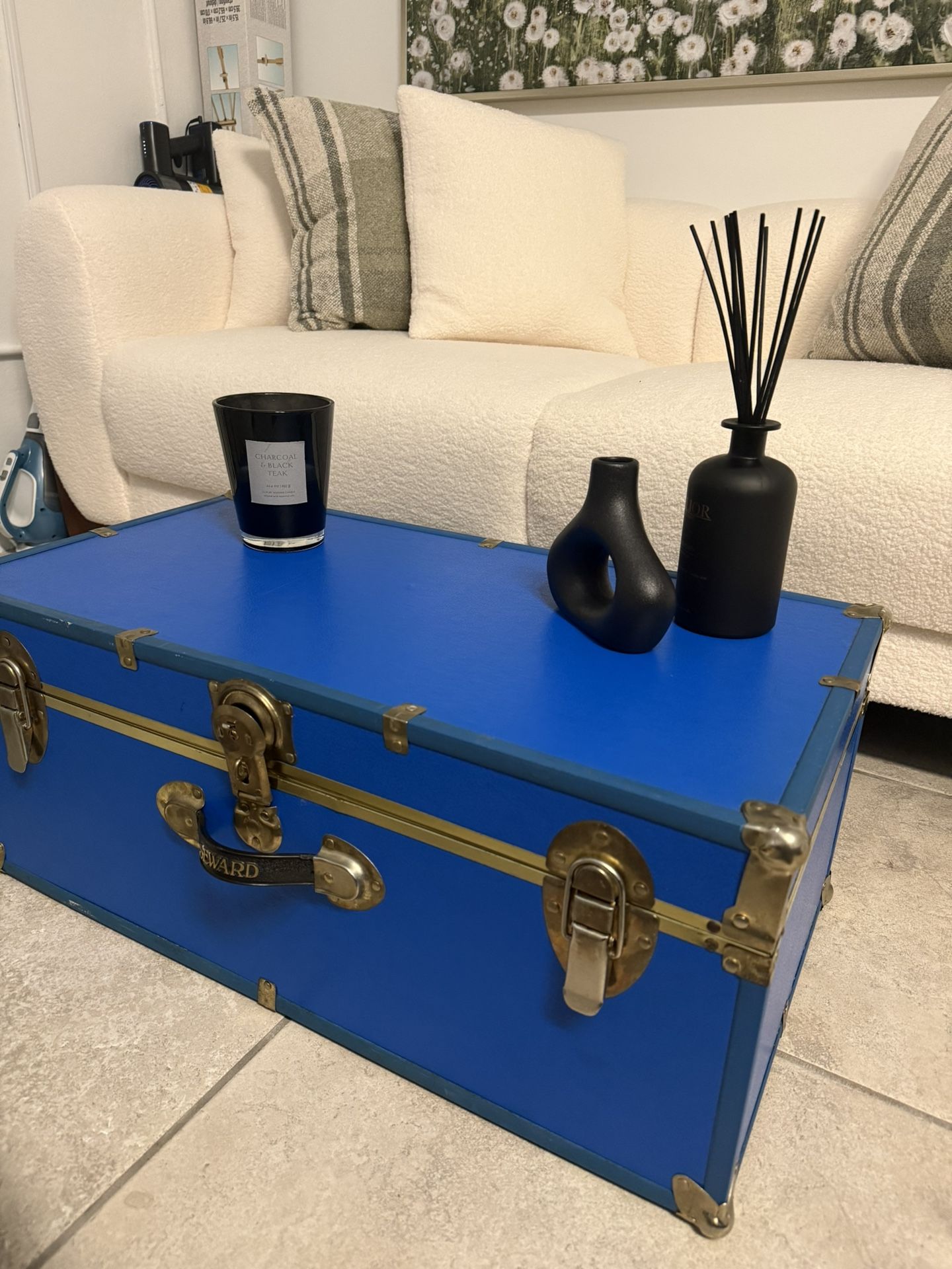 Vintage Seaward Steamer Trunk – Blue with Brass Hardware