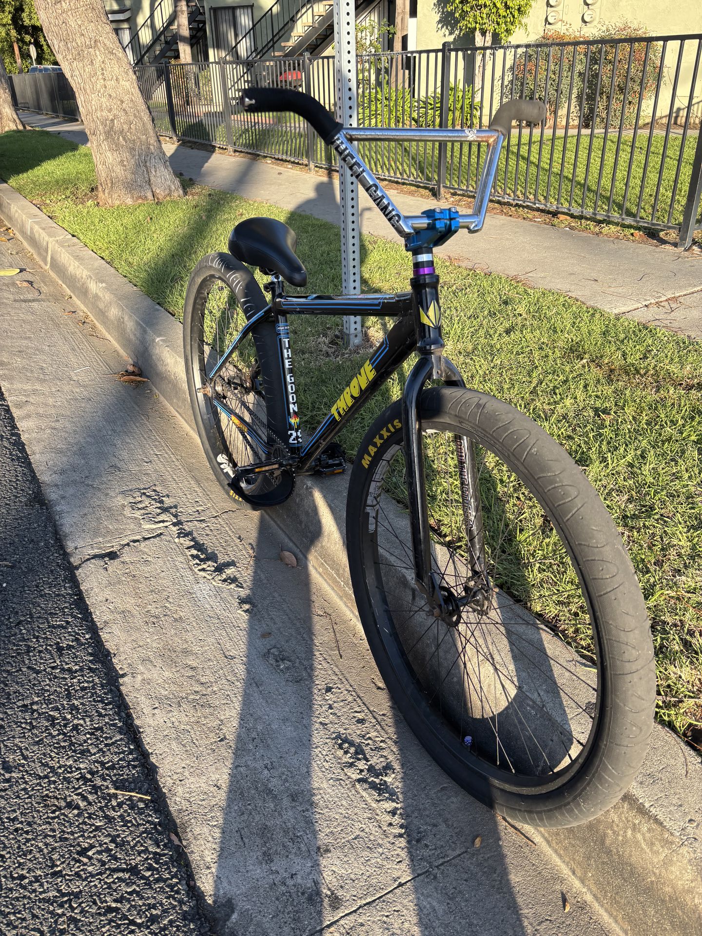 Has deore cranks now Has Original seat now Demolition pedals ODI grapes Chrome 2wgs Double maxxis Stock blue stem Double street co rims