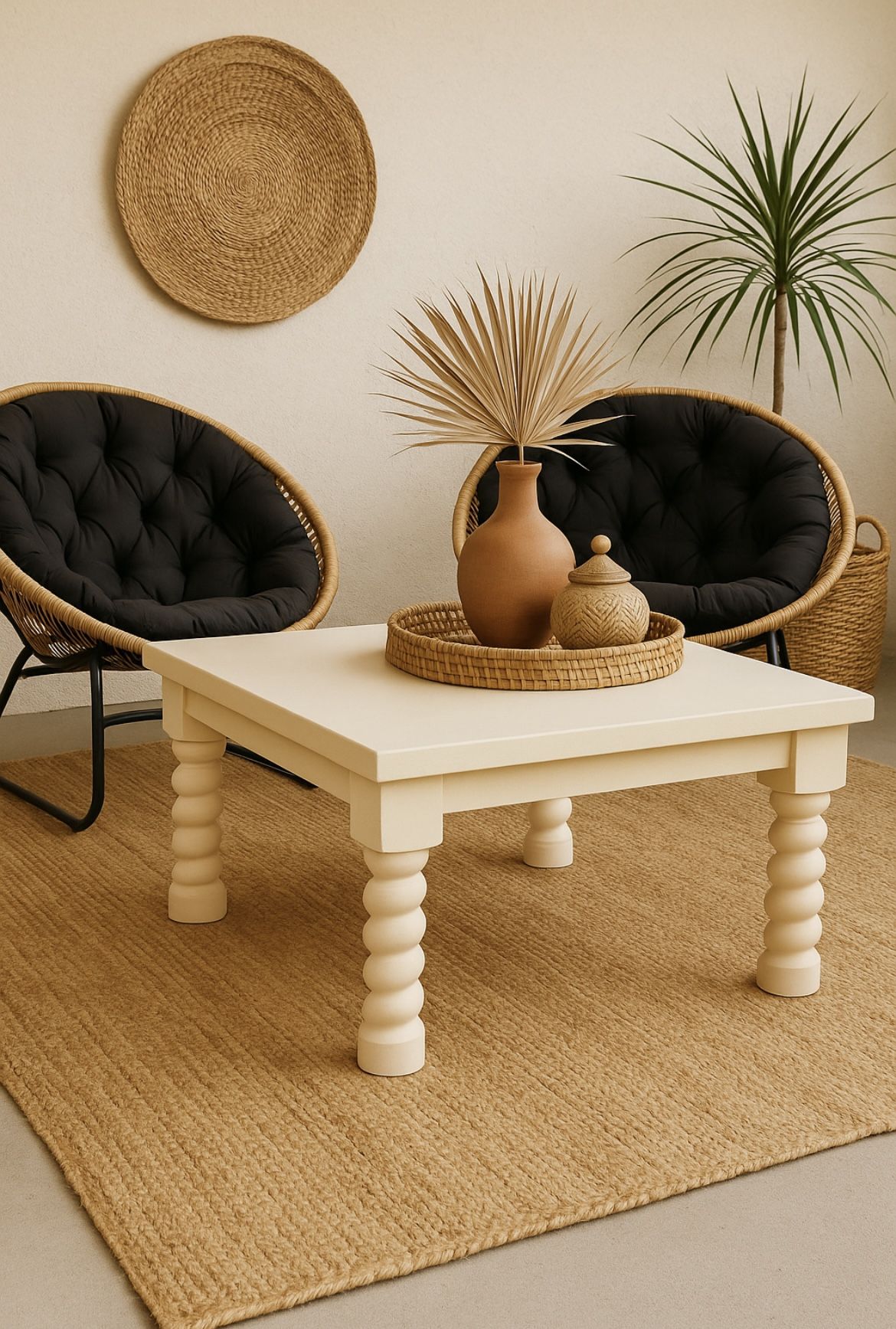 Bring timeless style to your home with this boho chic coffee table, featuring beautifully sculpted barley twist legs and a versatile cream finish. Measuring 36" long x 20" wide x 18" high, it’s the perfect size for a cozy living room centerpiece, stylish patio accent, or decorative display table. Crafted from solid wood for durability, this piece blends seamlessly with modern, coastal, and rustic interiors. Its neutral tone and elegant design make it easy to style, while its sturdy build ensures years of use. A statement piece that’s as functional as it is beautiful.