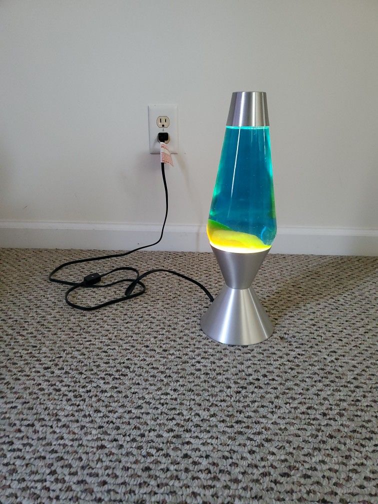Lava Lamp by Motion and Glitter Model 5200 Green/ Yellow wax in Blue liquid 16in tall