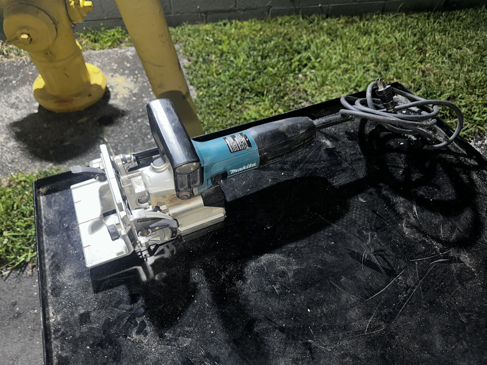 Coke with extra biscuits and upgraded Freud blade. Little use. The Makita Plate Joiner (model PJ7000), combines power and precision with ease-of-use features for strong and accurate biscuit joints for furniture making, cabinet construction and fine woodworking applications. The PJ7000 has powerful 5.6 AMP motor with 11,000 RPM for quick and precise cutting in a variety of woods. The rack-and-pinion vertical fence system is engineered for accurate fence adjustments, and the cast aluminum pivot fence has three positive stops at 0 degrees, 45 degrees, and 90 degrees. The blade diameter is 4 inches with a maximum cutting depth of ¾ inches, and there are six depth settings with one-touch stops for the most common biscuit sizes including #0, #10 and #20.