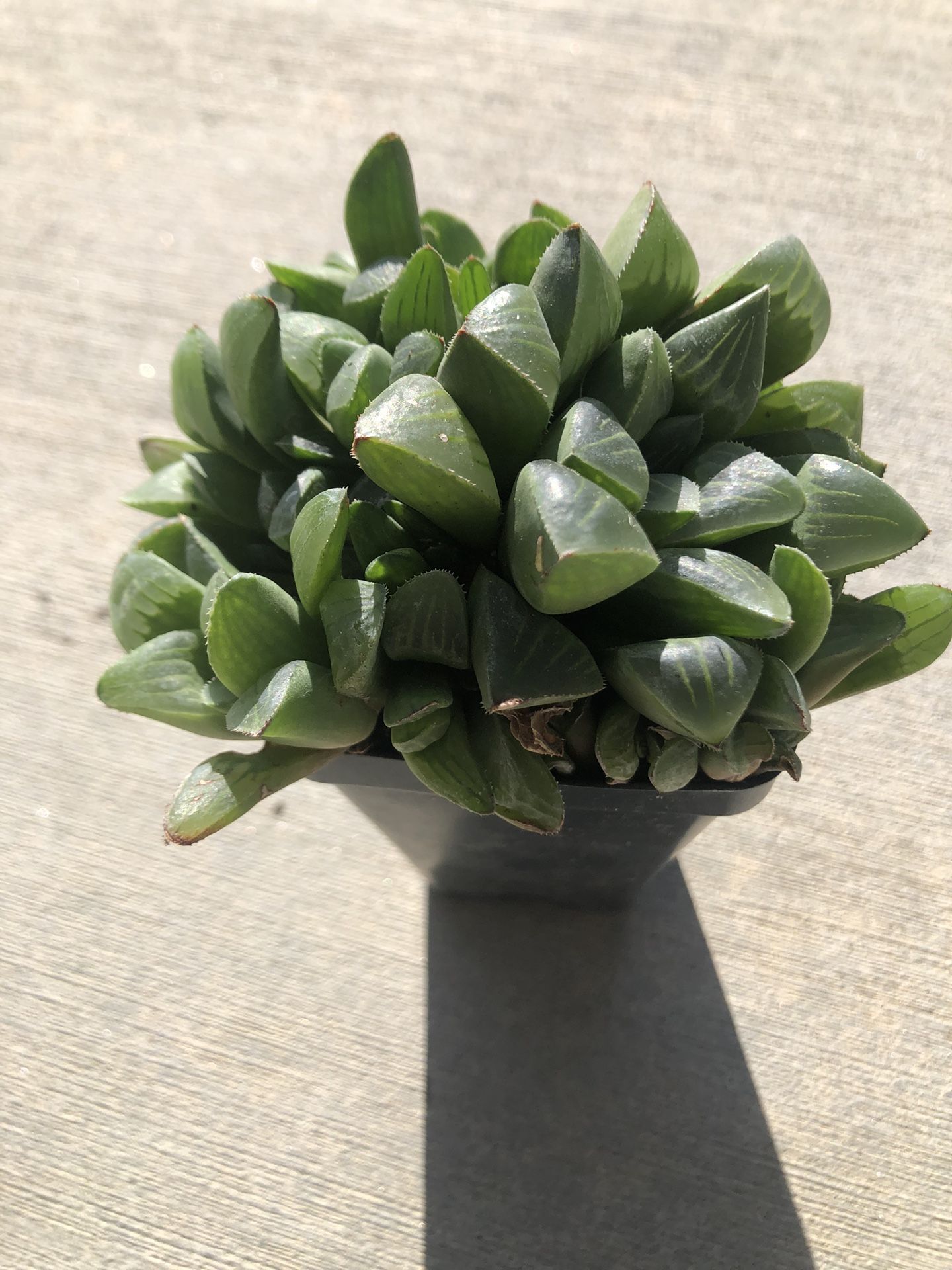 2” Haworthia is huge, with many pups. Great for shade or party sun. Plant in a ceramic container, in a combination out leave it in this plastic pot. Beautiful! Special for 2 weeks: 3 for $2.00.