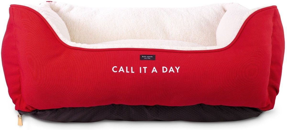 The pillow structure of this bed will cradle your pet in comfort. Features branded gold hardware for a touch of luxury, plus a woven logo label for added style. Bottom unzips so you can remove the cover for machine washing. Insert can be spot cleaned as needed. Bolstered edges on all sides offer head and neck support. Help your furry friend catch some Z's after a long day with the Kate Spade New York Call It A Day Bolster Dog Bed with Removable Cover. This comfy pet bed features raised edges on all sides for neck support and a pillow structure that provides cushioned comfort. Non-slip rubber material at the bottom helps keep the bed firmly in place, and the cover is removable and machine washable for easy care. Suitable for all sorts of furry friends, this bed is a stylish choice both you and your buddy will love.