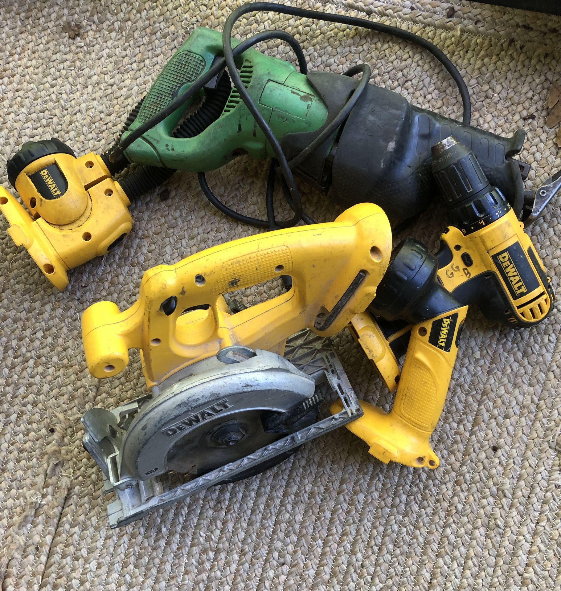 DeWALT Drill DeWALT Cordless Saw DeWALT Bendable Light DeWALT Shop Light Reciprocating Saw Bought new tools $90