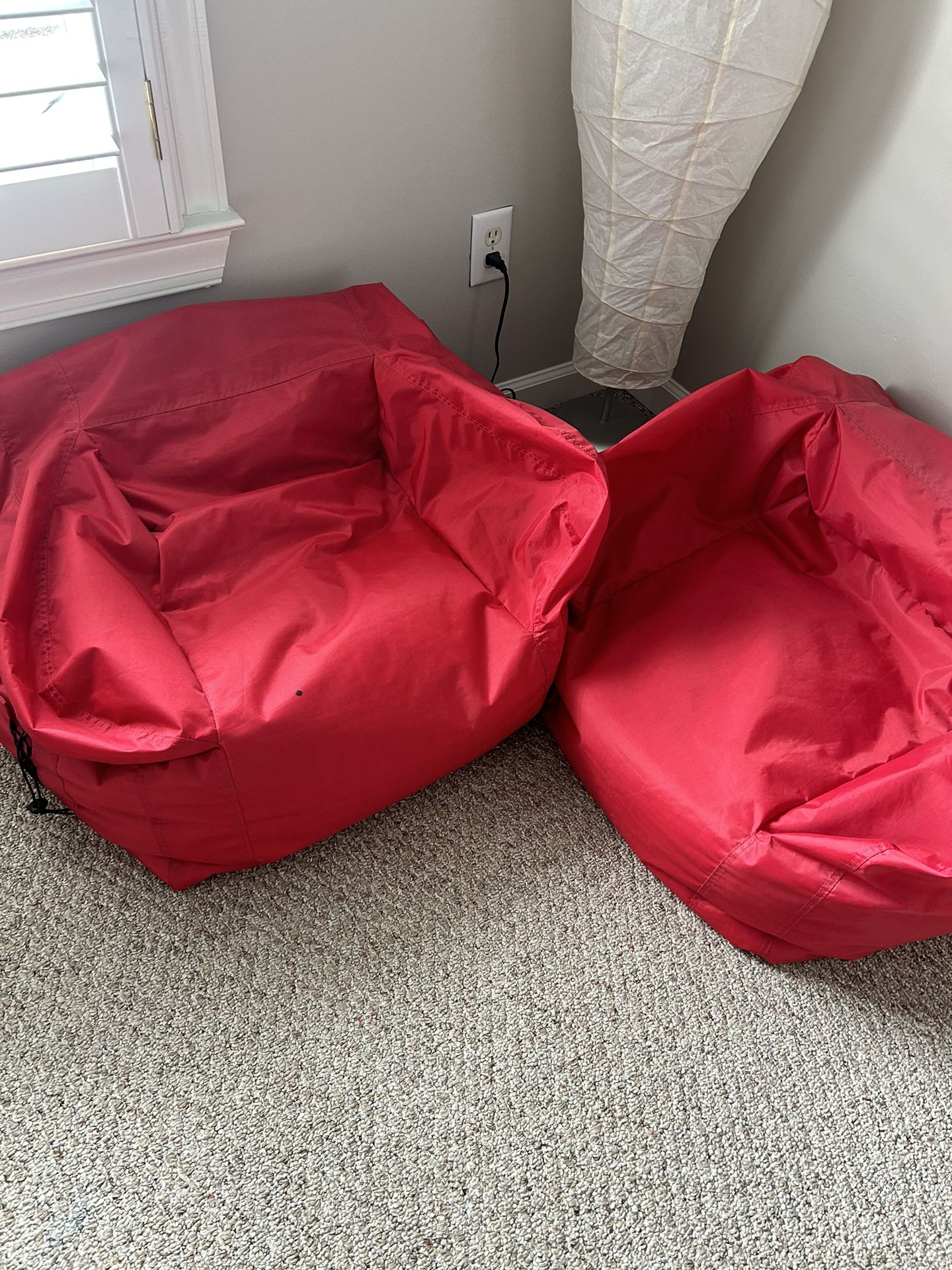 Beans in the bag have flattened down. Can be refilled with new beans. Selling for low price due to this. Selling one for $10 each and two for $20.