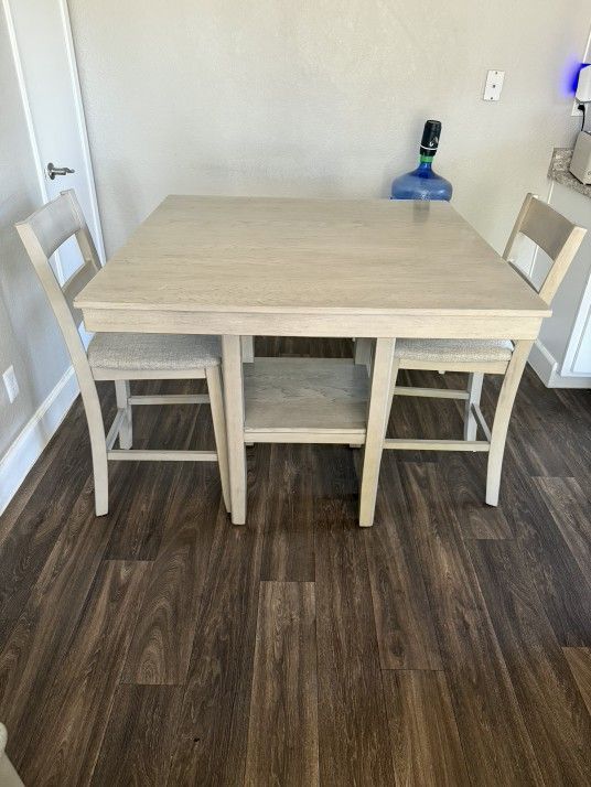Dimension 40"W x 40"D x 36"H Dining table with 2 matching chairs in great condition. Clean, sturdy, and well cared for. Perfect for apartments, small kitchens