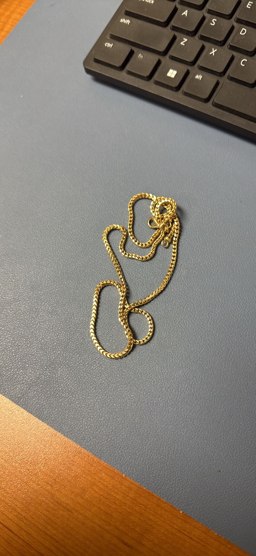 22 inches long 2.5mm wide 20.4 grams 14k