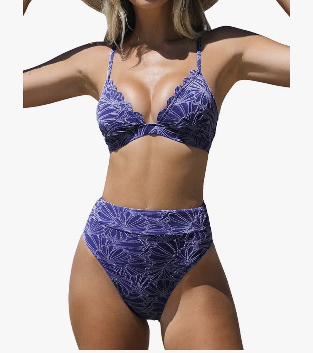 CUPSHE Bikini Set for Women Bathing Suit High Waisted Scalloped V Neck Two Pieces Swimsuit