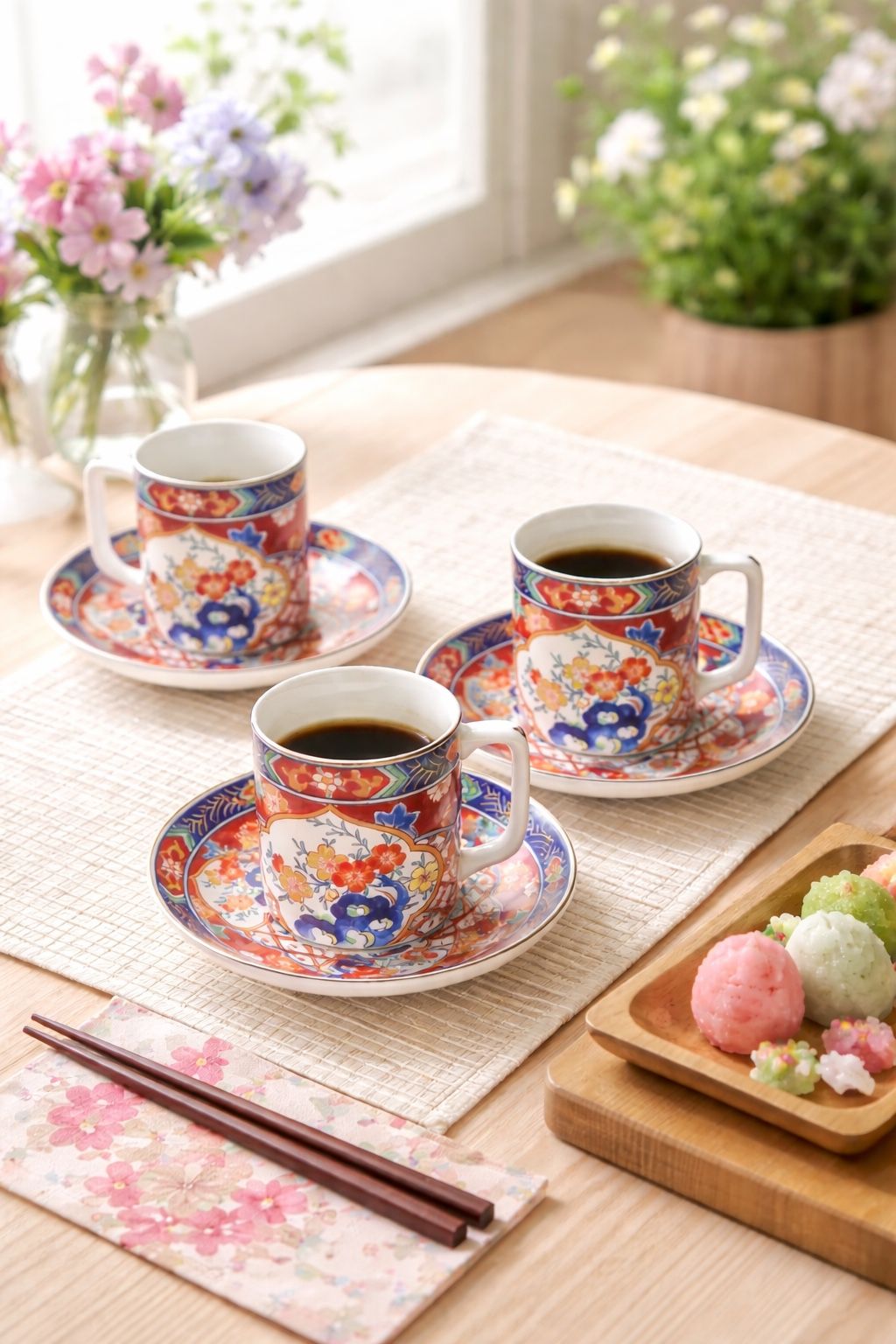 Andrea By Sadek Japan 1960s Imari Style 3 Sets Demitasse Cups Saucers + 1 Saucer