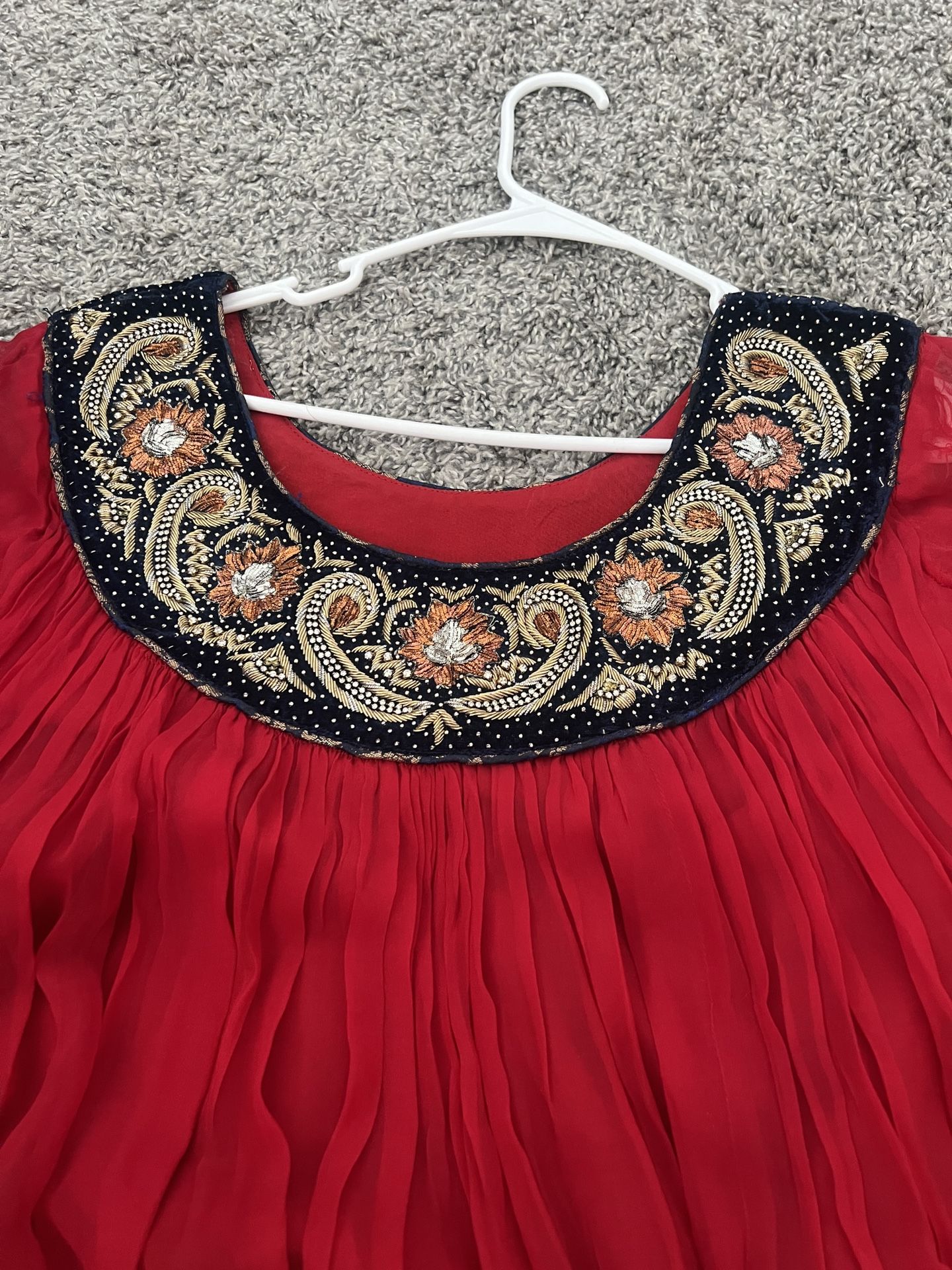 Duppata , Trouser And Frok With Hand /Ada Work On Red Pure Chiffon