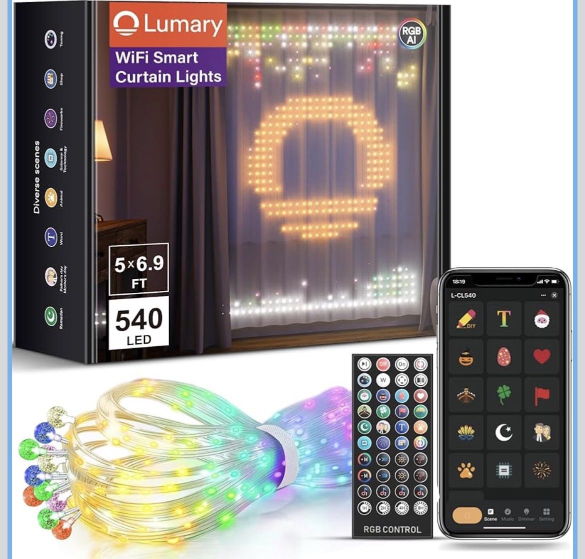 Lumary WiFi Smart Curtain Lights 6.9 x 5FT, 540 RGB LED Curtain Lights