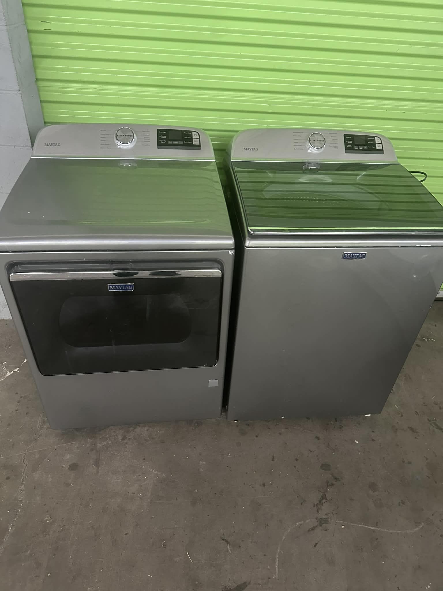 Great working conditions Maytag washer and dryer set. 🧺Waher: 💦 Extra Power Button Some stains dissolve best in hot water. Others in cold. With the push of a button, Maytag fights both in a single load. The Extra Power button boosts stain - fighting performance on any wash cycle with a dual-temperature wash. 💦Deep Fill Option For more water when you want it, select the Deep Fill option to fill the wash basket with your choice of deeper water levels. The extra water works with robust wash action to effectively break down and rinse away everyday tough messes. (Bulky Items cycle only available with deepest water level) 💦 Quick Wash Cycle The Quick Wash cycle cleans small, lightly soiled loads in 30 minutes with extra high spin speeds, pairing nicely with the Quick Dry cycle on matching Maytag® dryers to get your clothes ready in no time. (Based on a 3-lb load) 🧺Gas Dryer: 💨 Extra Power Button The Extra Power button boosts drying power on any cycle by extending time, heat and tumbling. One push helps prevent underdrying by getting thick fabrics, pockets and seams drier the first time. 💨Advanced Moisture Sensing Advanced Moisture Sensing uses multiple sensors to monitor inside moisture and air temperatures to help evenly dry loads. 💨Quick Dry Cycle Dry a small load fast with the Quick Dry cycle, which pairs nicely with the Quick Wash cycle on select Maytag® washers to get clothes ready in no time. Pickup at my storage in: 11423 Vanowen St, North Hollywood, CA 91605 Or delivery for a fee within few miles. NO HOLDS TEXT WHEN YOU PLAN TO COME PLEASE