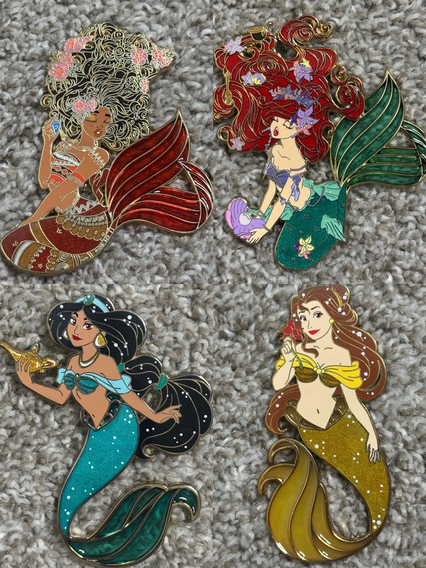 Authentic Designer Mermaids collectible Disney pins. (16 pins total) total lot valued at over $3,000. These pins are in new condition and have been kept in a display case.
