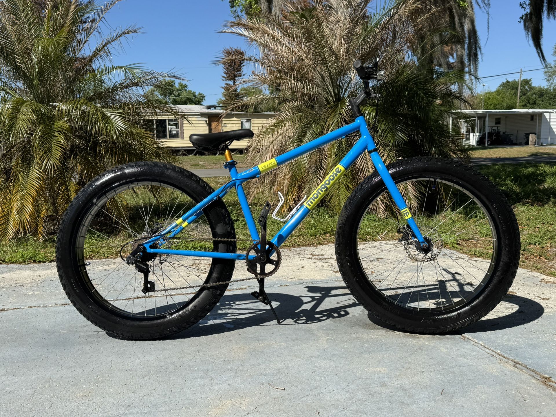 Good condition, new shimano shifter, new shimano derailleur, new grip doble lock, new seat posts , new chain Tire are 26”x4” , disc brakes, OBO or Trade