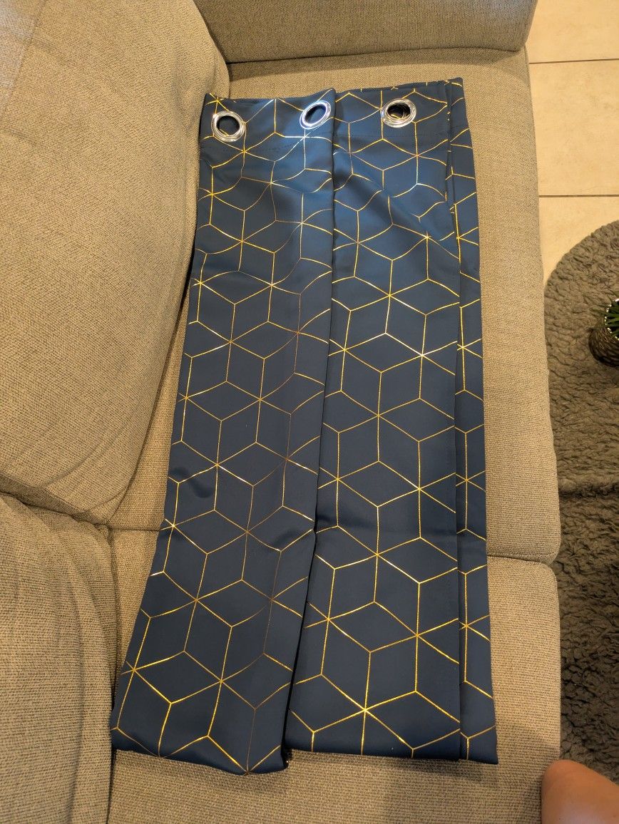 Blue and gold geometric design. Each set has 2 panels for a total of 4 panels. One set for $25 or both for $40