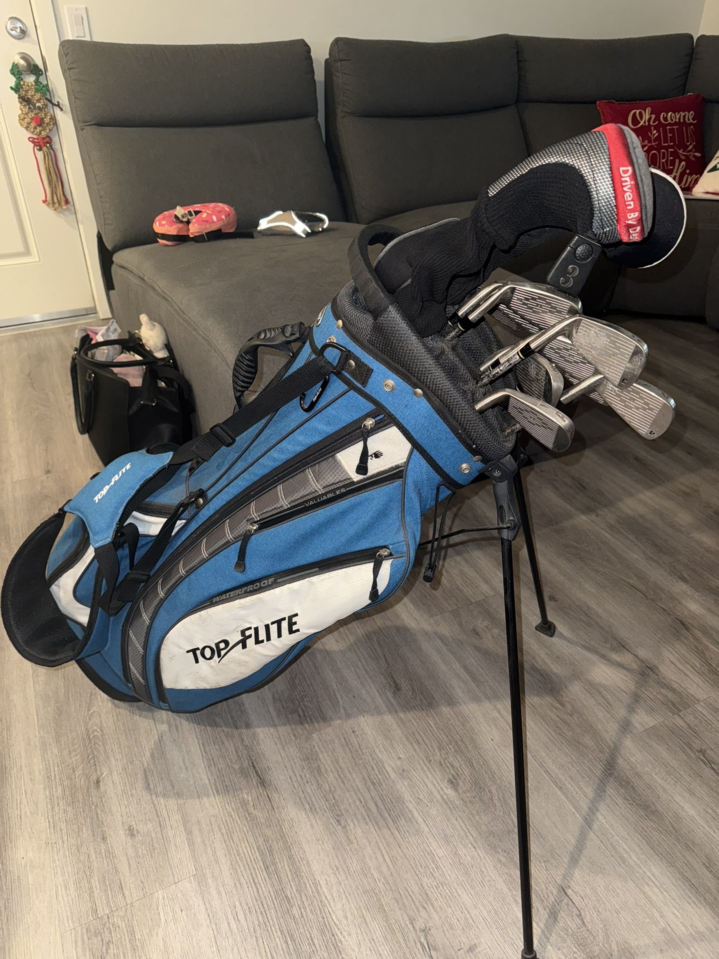 Has golf balls in bag as well. One of the drives is broken as shown in picture.