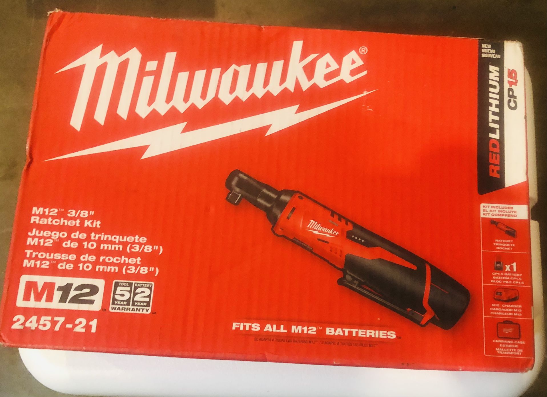 Milwaukee M12 12V Lithium-Ion Cordless 3/8 in. Ratchet Kit with One 1.5 Ah Battery, Charger and Tool Bag