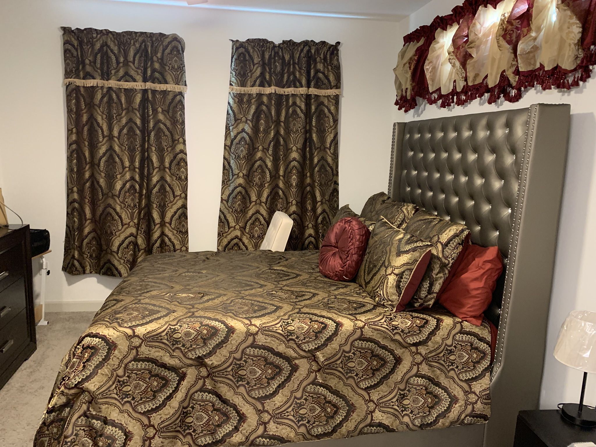 Queen Size Bedroom Set with mattress, bedding and dresser mirror set solid wood