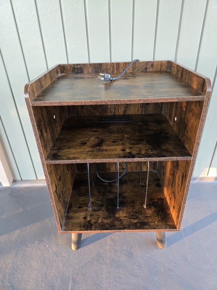 this no longer matches my furniture, all the plugs and chord works. its in very good condition (like new). originally costs $90, purchased 2 years ago. It has a power chord and places to plug in record player. it is 30 inches tall and 19.5 inches wide