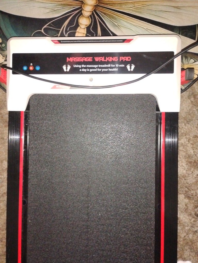 This treadmill has only been used twice it is double sided the features is massaging for your feet and great for circulation control it reaches a speed of 4.0 works great and fits under your bed