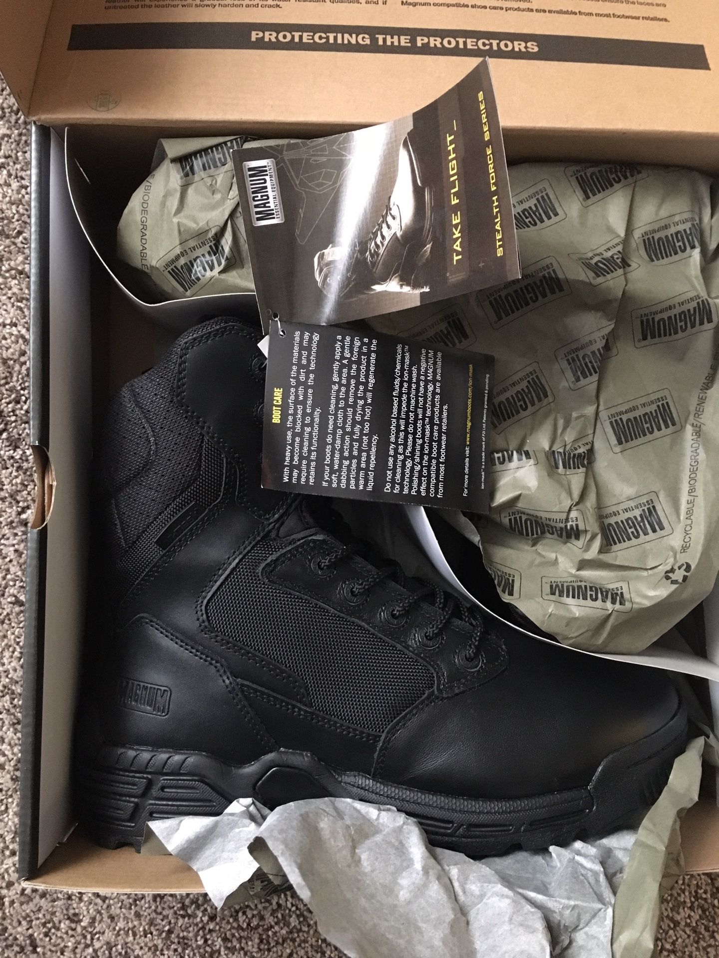 Brand New Magnum Stealth Force 8.0 Side Zip weather proof boots. Size 9.5