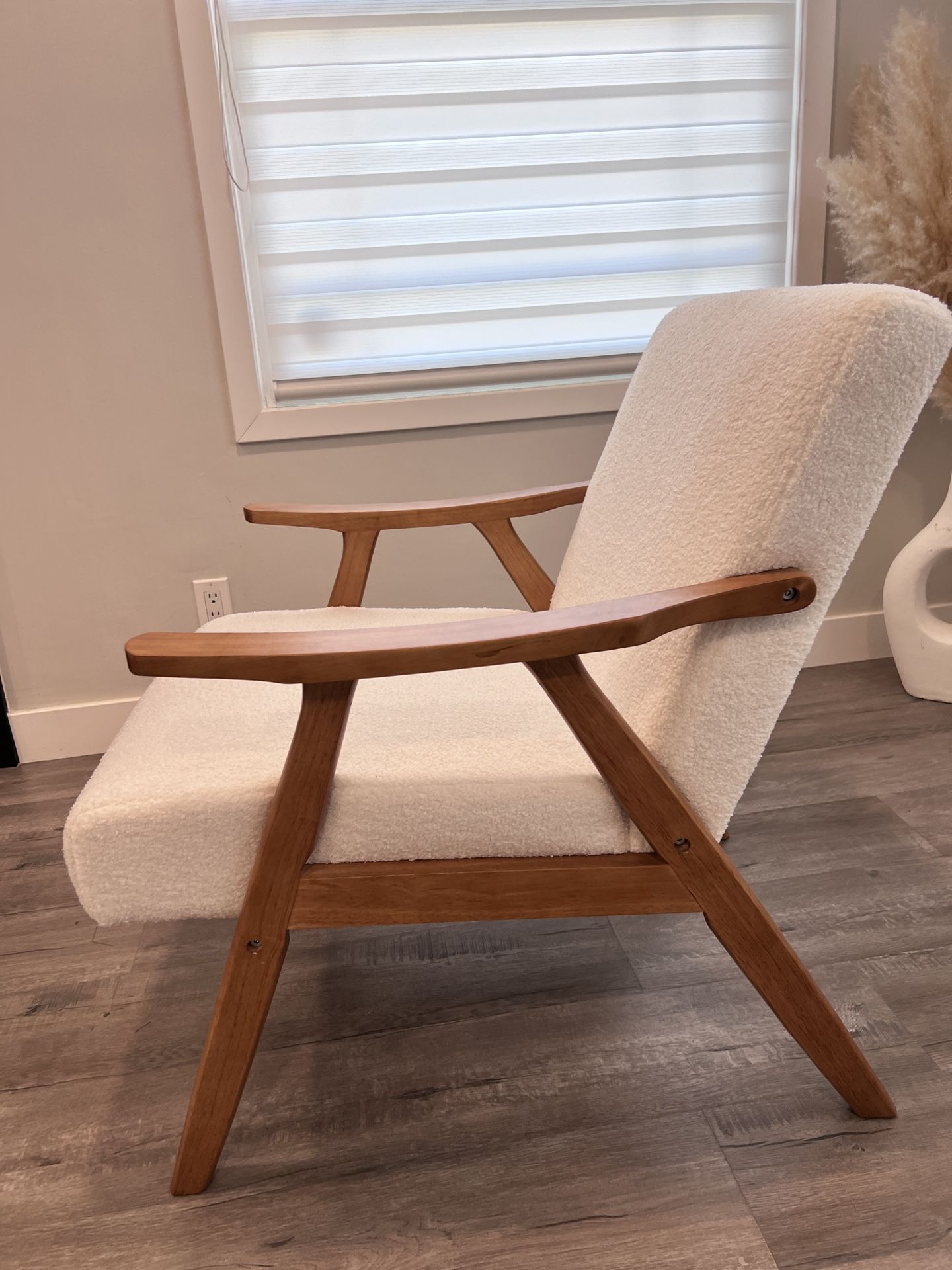 Option A — For One Chair: Modern and stylish white bouclé upholstered accent armchair with solid wood frame and angled legs. Clean, well cared for, and great for living room, bedroom, or reading nook. Comfortable and chic design that fits with modern or mid-century décor. Local pickup — priced to sell! ⸻ Option B — Bundle Deal (2 Chairs): Set of 2 modern white bouclé lounge chairs with solid wood frames. Sleek, minimalist design perfect for living room, bedroom, or office. Well maintained, clean, and ready to enjoy! Bundle price — message if you want both!
