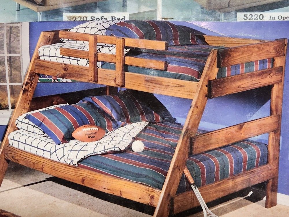 New from Wood Products International! This comes to you as unfinished twin/full 1pc. Aframer so u can climb on either side. Get it @ Mattress Closet!