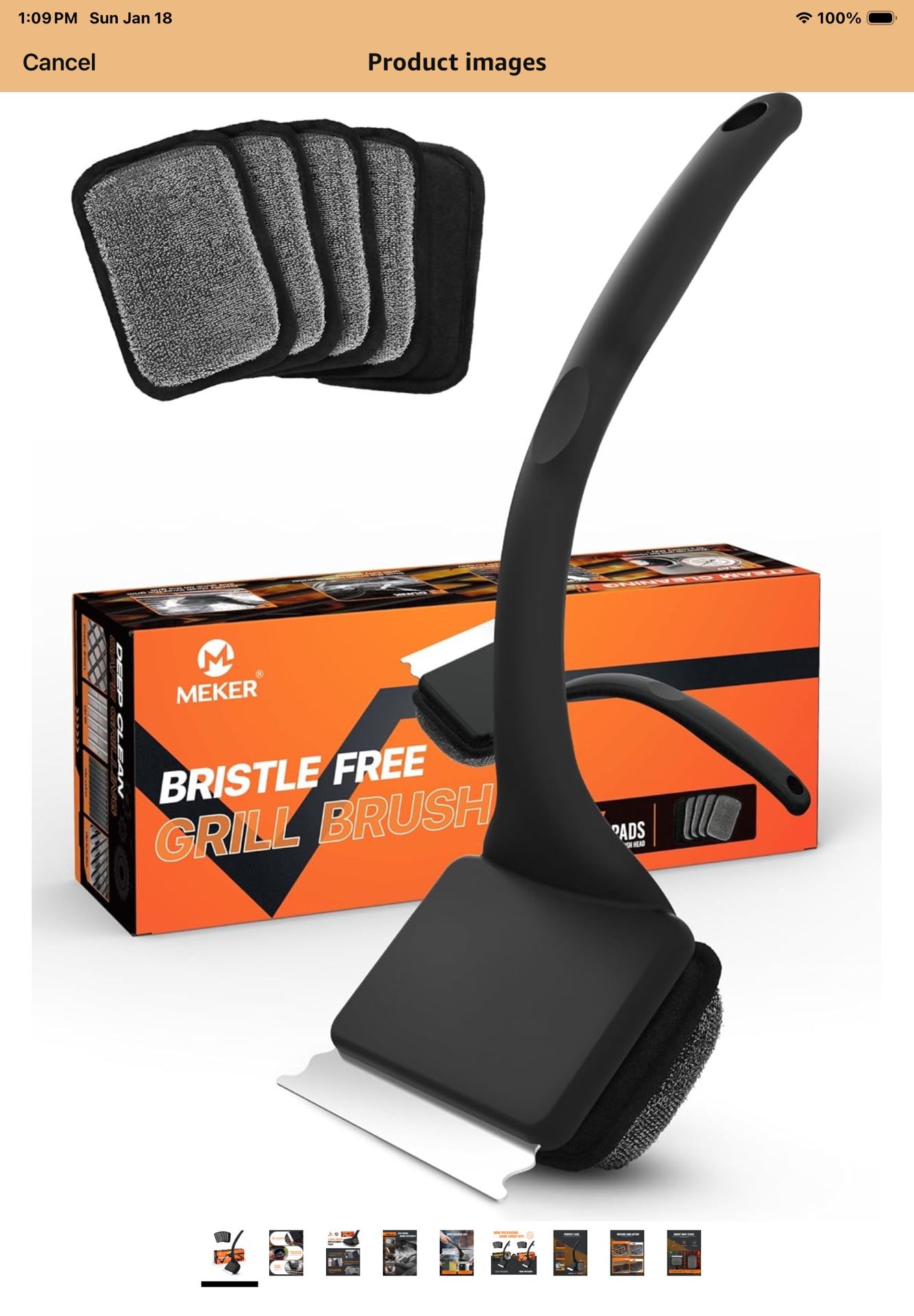 MEKER Grill Brush Bristle Free, Grill Cleaner Brush with 5 BBQ Replacement Head for Cast Iron, Stainless Steel Grates, Safe Grill Scraper Outdoor BBQ Grill, Black