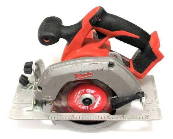 Milwaukee model 2630-20 cordless 6-1/2” circular saw in good condition. Features: Offers a powerful motor generates up to 3,500 RPM to easily and quickly cut tough material Bevel capacity of up to 50 Electronic brake stops the blade quickly Aircraft aluminum shoe helps improve accuracy Ergonomic, compact and lightweight design with soft-grip handle for operator comfort